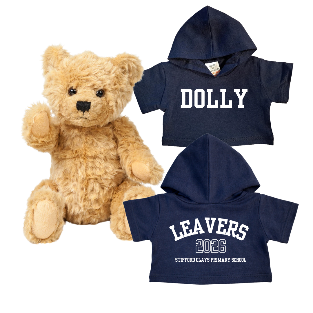 A cuddly and memorable keepsake to celebrate their leavers year. This soft teddy bear comes dressed in a mini hoodie, personalised with the child’s name on the front and a Leavers 2026 design on the back. A perfect memento to remember their primary school journey and a lovely keepsake to treasure for years to come.
