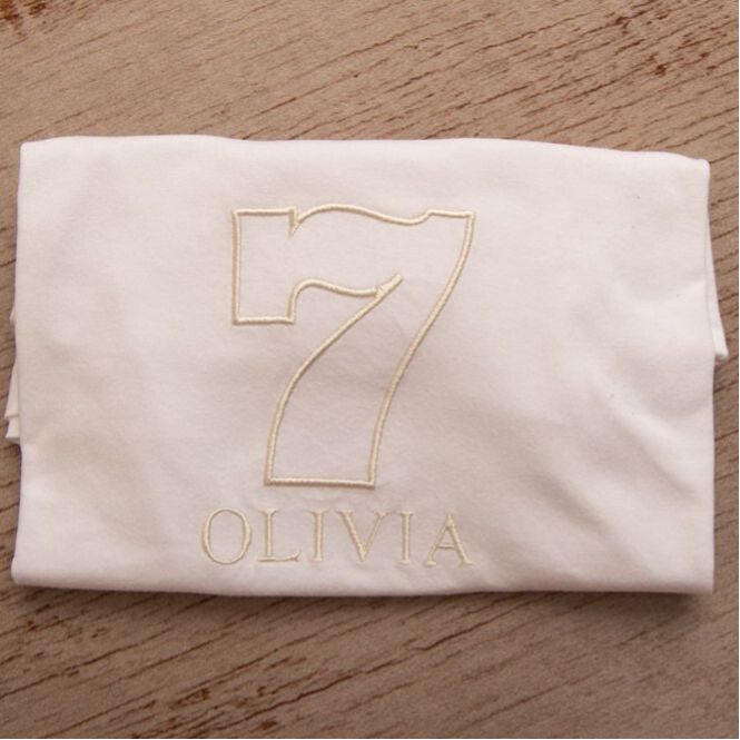 Celebrate your child's birthday in style with our birthday T Shirt, featuring a large, intricately embroidered outline of their special birthday digit. This bold design adds a unique and playful touch, perfect for making their day unforgettable. This lovely piece can be customised with your child's name for an extra-special touch.