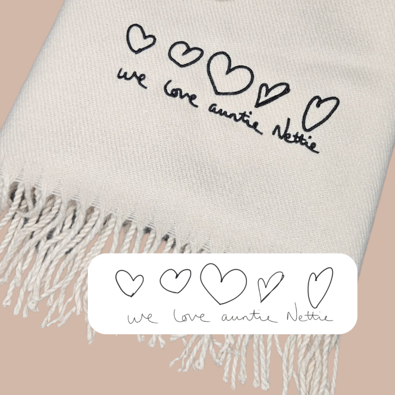 Bespoke Handwriting & Drawing Embroidered Scarf | Personalised Keepsake